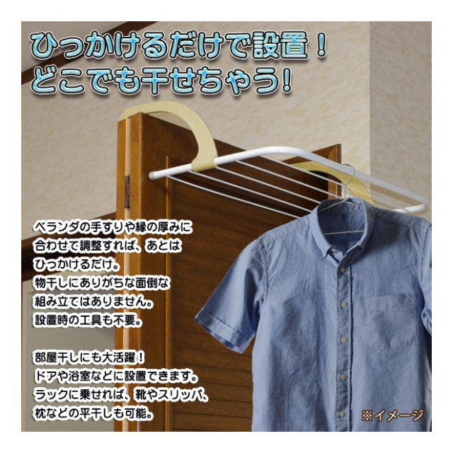 ベランダ・バルコニー、ドア、さらにはパーテーションなどに引っ掛けるだけ!