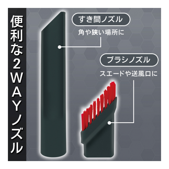角張った場所に入り込んだホコリも2WAYノズルでスッキリ吸引。