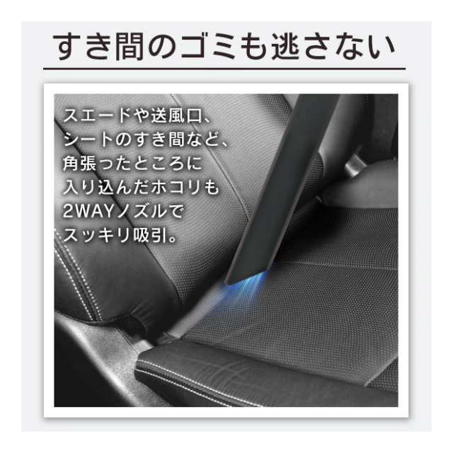 すき間やフロアマットに入り込んだ細かなゴミもこれ1台でスッキリ吸引できます。