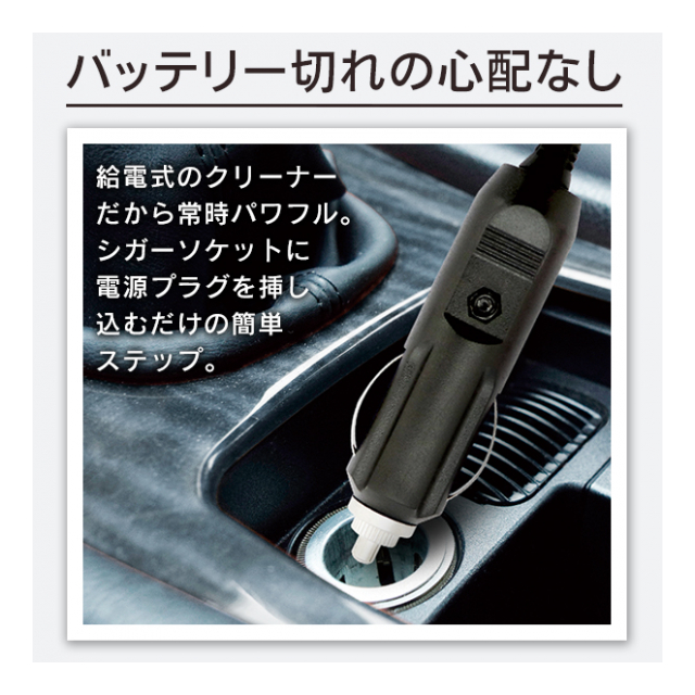 シガーソケットに電源プラグを挿し込むだけの簡単ステップ。