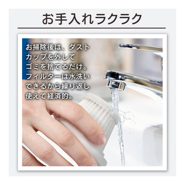 フィルターは水洗いできるから繰り返し使えて経済的。