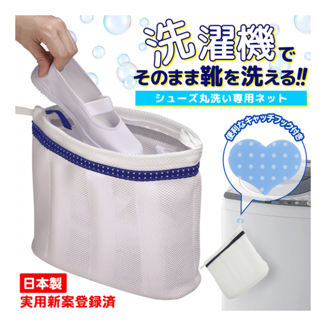 日本製 シューズ丸洗い専用ネット 実用新案登録済 スニーカー丸洗い 洗濯ネット 靴用 キャッチフック付 スニーカー シューズ用 運動靴 上靴 上履き 子供靴 から 大人用 27cm まで対応 便利グッズ 洗濯用品 ◇ シューズ丸洗い専用ネット