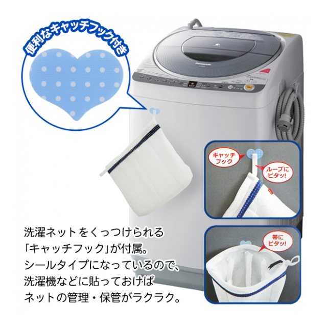 洗濯ネットをピタっとくっつけられる「キャッチフック」が付属!