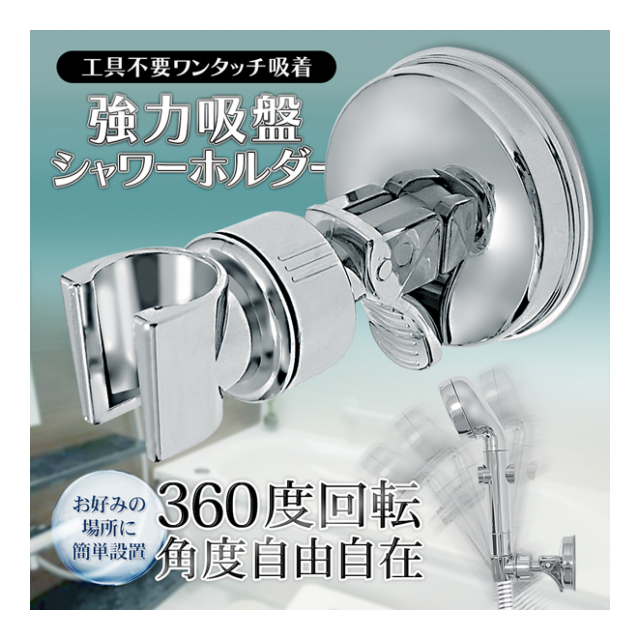 超強力 吸盤式 シャワーホルダー メタル 穴あけ不要 工具不要 ピタッとくっつく シャワーフック 角度調整可能 取り外し簡単 360度回転 吸盤フック バスルーム お風呂用品 バスグッズ 浴室用 便利グッズ 新生活 ◇ 吸盤式シャワーホルダー