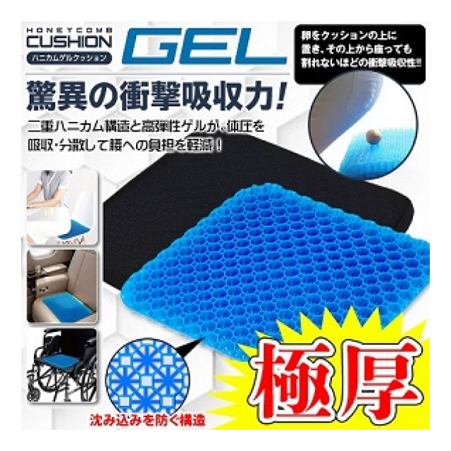 ゲルクッション 極厚 4.5cm ハニカム構造 二重構造 卵割れない クッション 座布団 体圧吸収 分散 メッシュカバー付き 高弾性ゲル 水洗い可能 分厚い お尻痛くない クッション ミニマット 健康グッズ 新生活 カー用品 ◇ 極厚ハニカム
