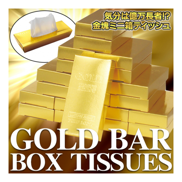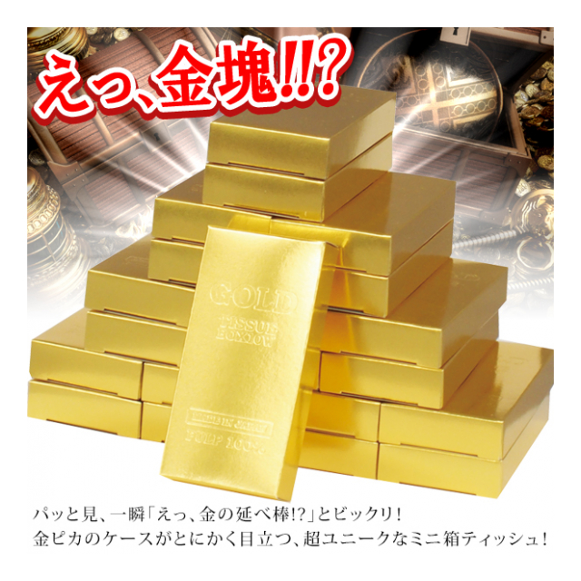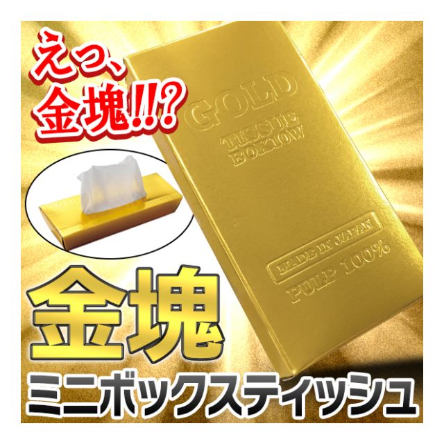 ゴールドが眩しい金ピカのケースがとにかく目立つ、超ユニークなミニ箱ティッシュ!