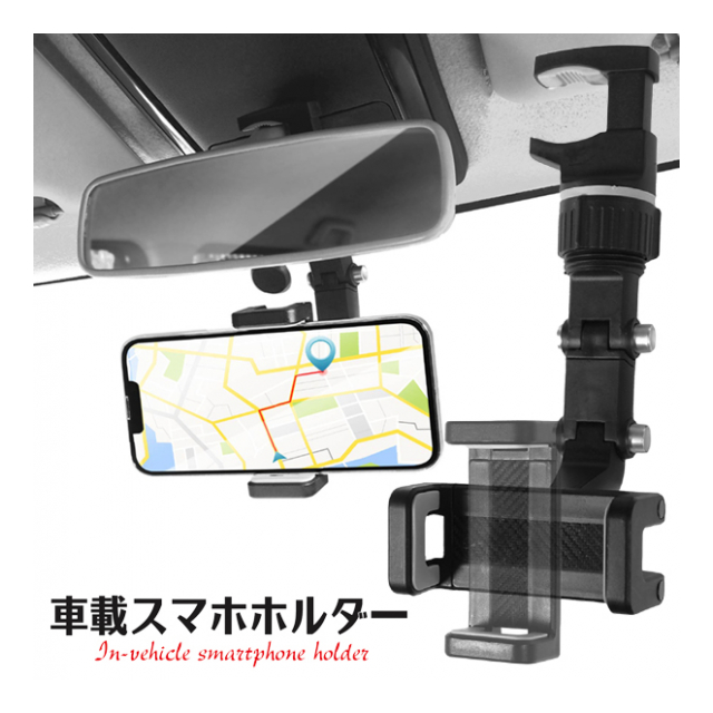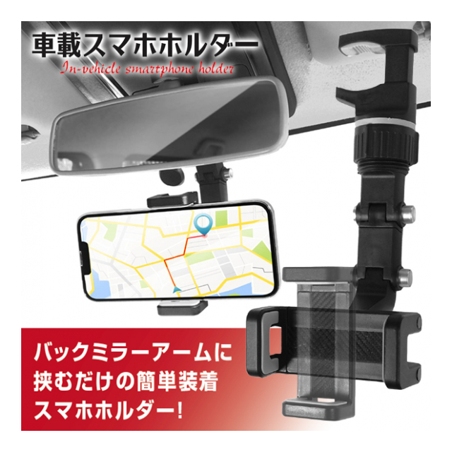 挟むだけ 車載スマホホルダー 車用 スマホスタンド 車 クリップ バックミラー 装着タイプ 角度 回転自在 スマホナビ 音楽再生 動画録画 ドラレコ代用 アンドロイド iphone ◇ 車載スマホホルダーHAC