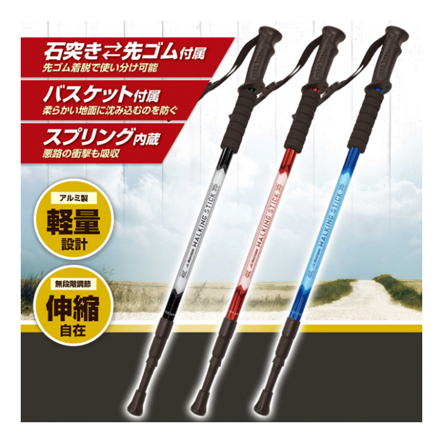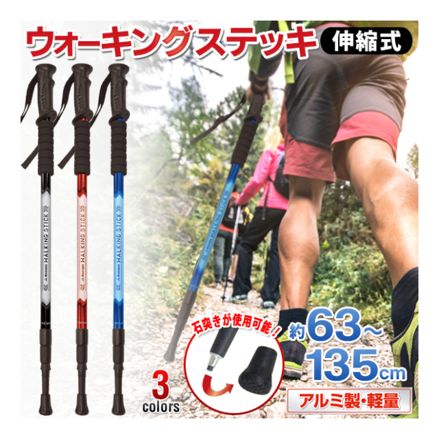 アルミ製で軽量、握りやすいグリップで安心してウォーキングを楽しめます。