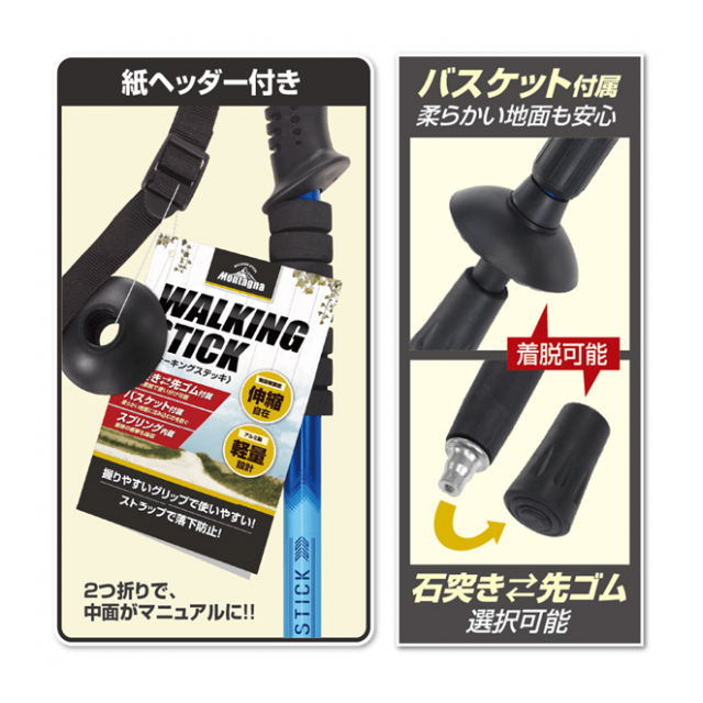 Montagna モンターナ ウォーキングステッキ 軽量 アルミ製ステッキ 伸縮式 63cm から 135cm 石突き付 トレッキングステッキ 運動 杖 登山 アウトドア 散歩 ウォーキングポール トレッキングポール アウトドア 介護補助 山の日 敬老の日 ◇ HAC3448のステッキ