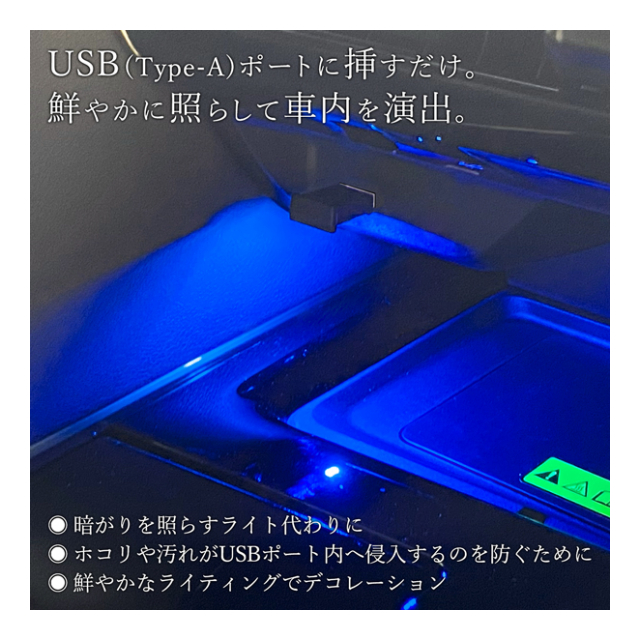 車のUSBのType-Aポートに挿すだけで綺麗に光る!