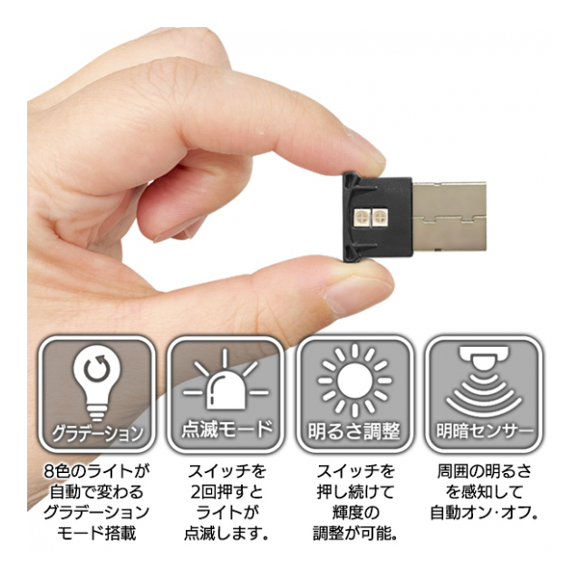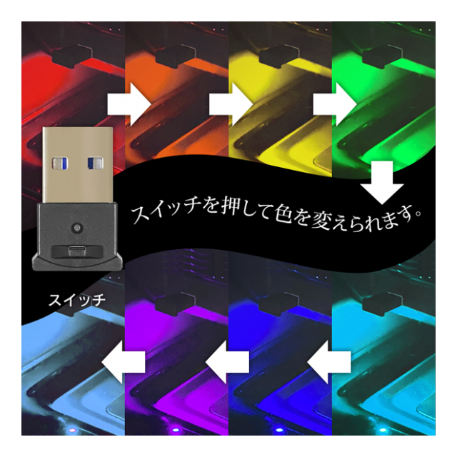 USBType-A端子に挿すだけで鮮やかに光る!