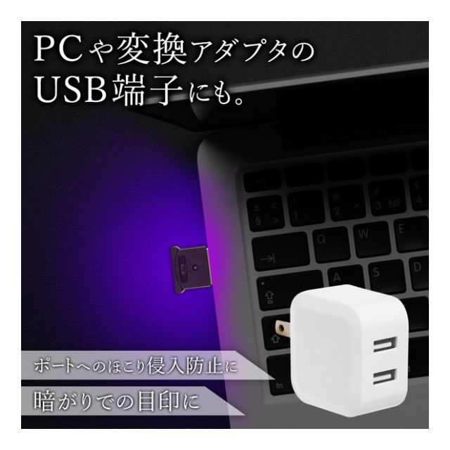 PCや変換アダプタのUSB端子にも。
