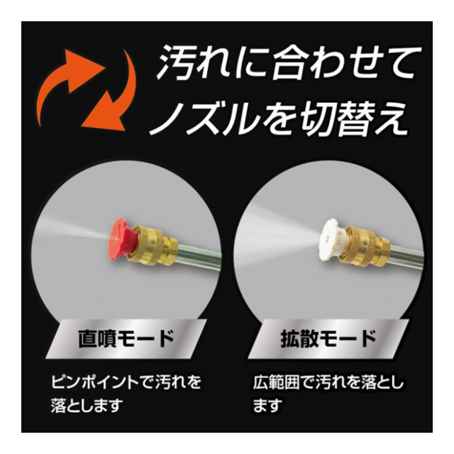 ・・・しつこい汚れや泥汚れ、コケ落としに最適な直噴モード。ピンポイントで汚れを落とします。