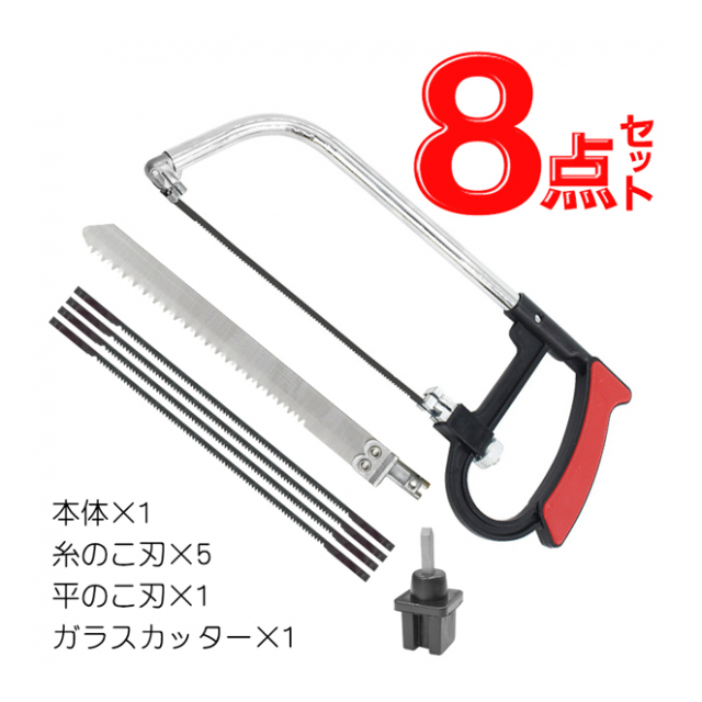 手動のこぎり 8点セット 平のこ 糸のこ ガラスカッター 3種刃つき 手動 万能ノコギリ DIY 組み立て 大型ごみ 解体 修理 工具 新生活 大工道具 工作 DIY ベニヤ板 アルミ 木材 塩ビ 大型ごみ 切断 クラフト 家庭用 ◇ 手軽にDIY