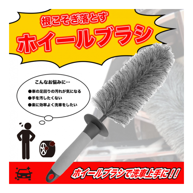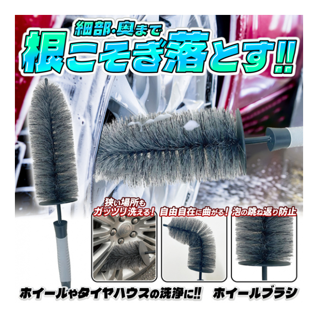 ホイール ブラシ 細部 奥まで 根こそぎ落とす 48cm ロングブラシ 曲がる 洗車ブラシ ホイール洗浄 洗車 カーウォッシュ 足回り ディティールブラシ 傷つかない 48cm ブラシ曲がる 泡洗浄 飛び散り防止 洗車ブラシ 洗車グッズ 作業道具 ◇ ホイールブラシJIC