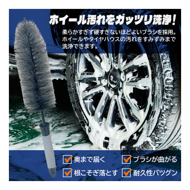 ■ ホイール奥からタイヤハウスまで掃除可能!