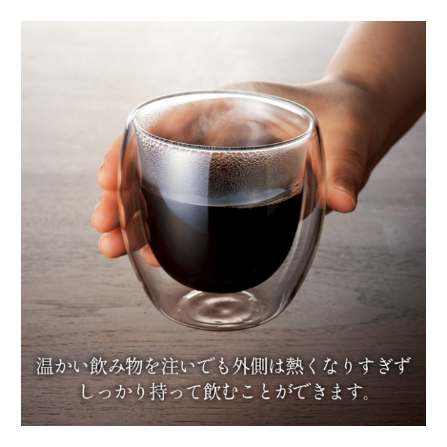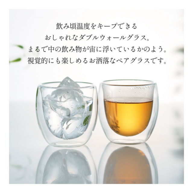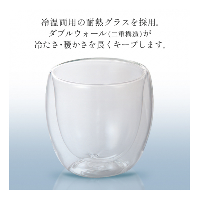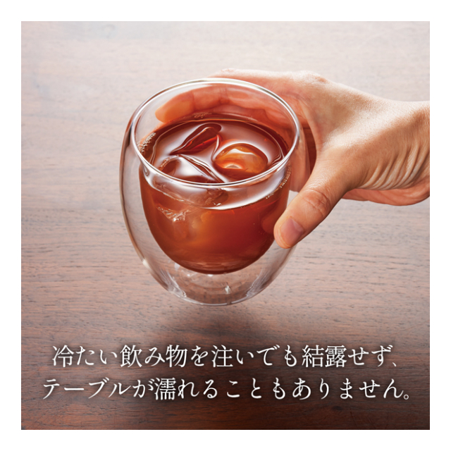 ダブルウォール(二重構造)のグラスが冷たさ・暖かさを長くキープします。