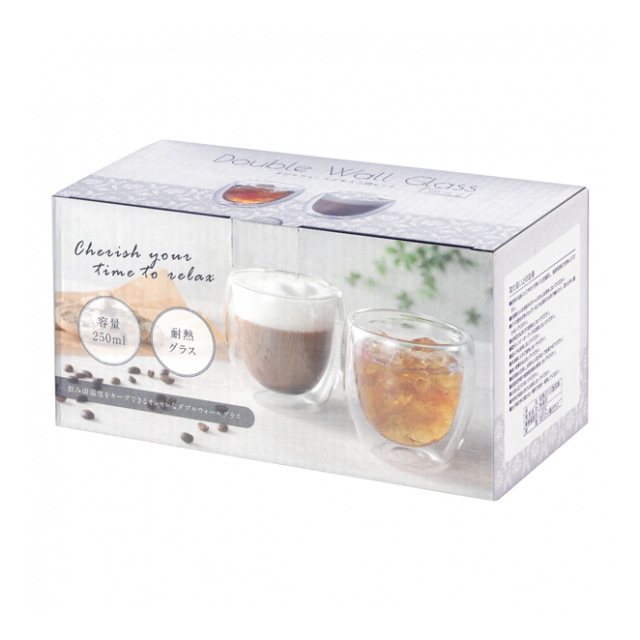 ダブルウォールグラス 2個セット 二重構造 グラス 250ml ホット アイス 両用 耐熱 ペアグラス 熱くない 結露しない おしゃれ コップ クリア タンブラー 新生活 ペアグラスセット 耐熱グラス 焼酎グラス キッチン用品 プレゼント 贈答品 景品 ガラスコップ ◇ ダブルウォールグラス