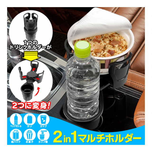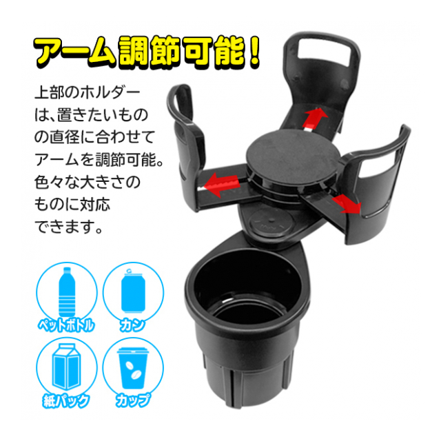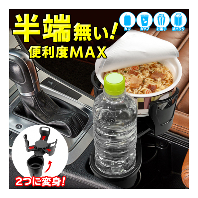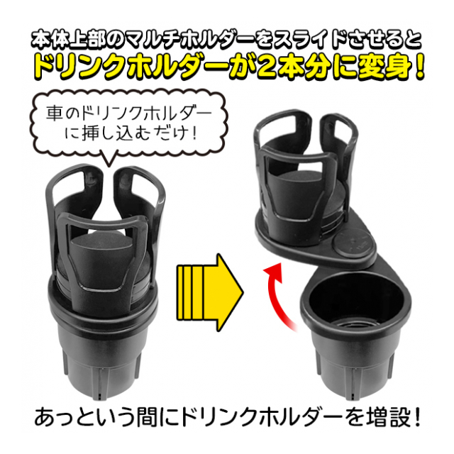 1つが2つになる ドリンクホルダー ツインドリンクホルダー 車載 カップホルダー 多機能 マルチホルダー アーム調整 カップサイズ変更 どんぶりok ダブルドリンクホルダー 車用 ドライブ アウトドア 便利 収納 カー用品 ◇ 快適感半端無いホルダー