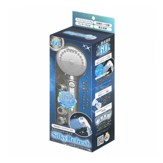 節水シャワー シルキーリフレッシュ シャワーヘッド 取り換え 節水60% ナノバブル 927万個 毛穴 汚れ落ちる シャワーヘッド ステンレス製 お風呂用 雑誌LDKで1位&ベストバイに選ばれました!最大60%の節水効果を実現!節水シャワーヘッド 3段階 モード切替 シャワー ミスト マルチ 手元 止水ボタン 美容 健康 ◇ シルキーリフレッシュ