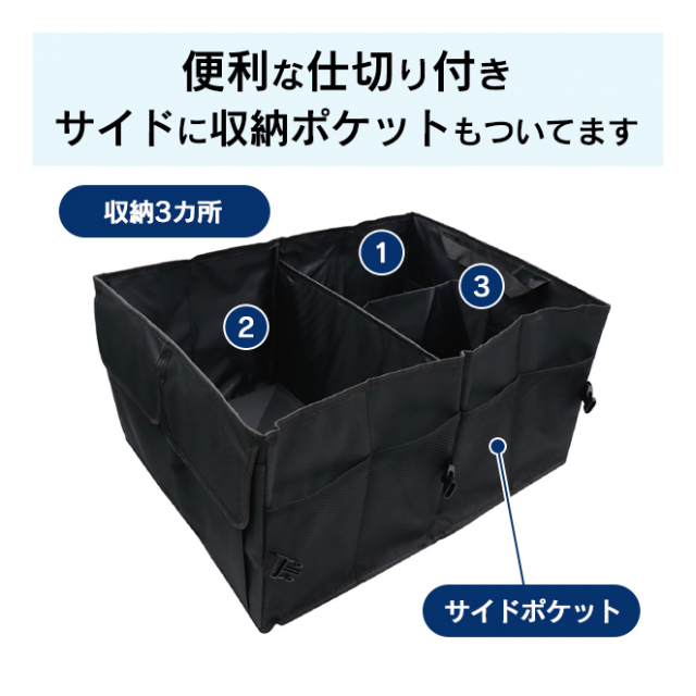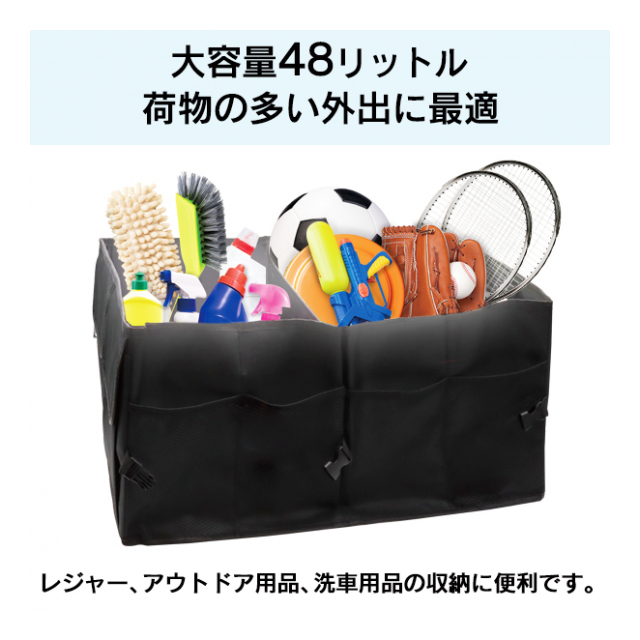 車用収納ボックス 大容量 トランク用 折りたたみ式 ストレージボックス 48L 仕切り サイドポケット 付き ラゲッジルーム 整理箱 トランクボックス 便利グッズ 収納ケース カー用品 収納ボックス 車用 メッシュポケット付 折り畳み式 アウトドア用品 食品 ペットボトル 洗車用品 片付け 車載収納BOX ◇ STボックス