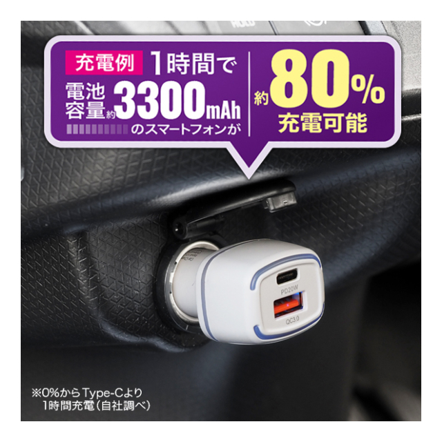 ■ 容量3300mAhのスマホが1時間で約80%充電可能!
