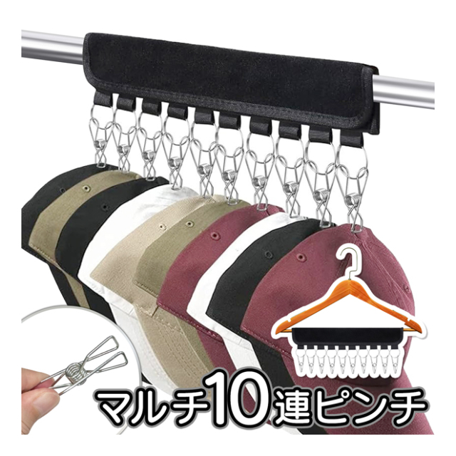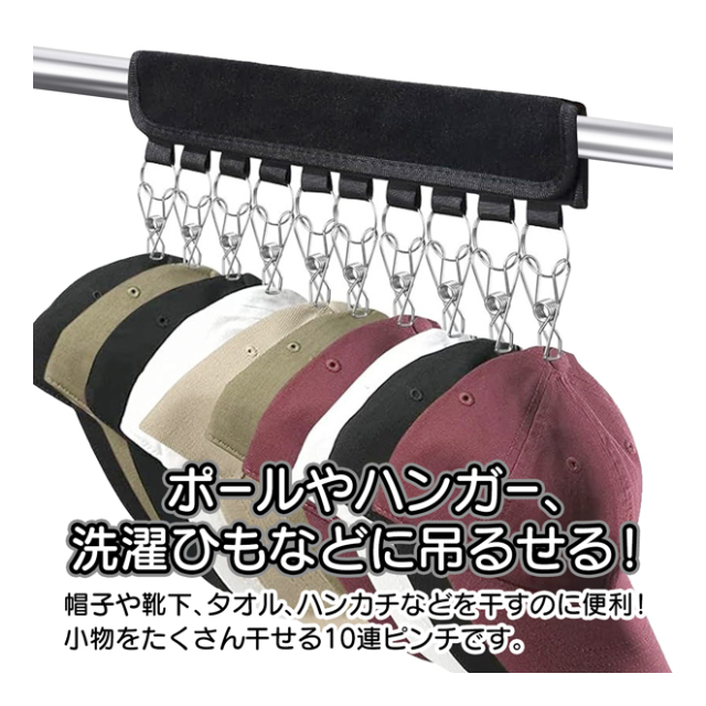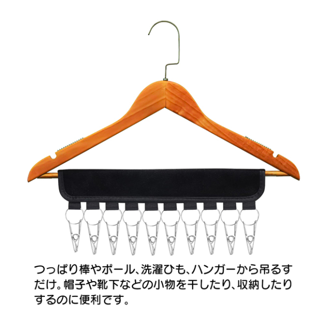 洗濯物干しに!帽子や靴下をたくさん干せる10連ピンチです。
