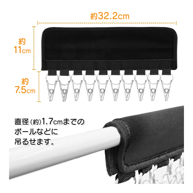直径(約)1.7cmまでのポールなどに吊るすことができます。