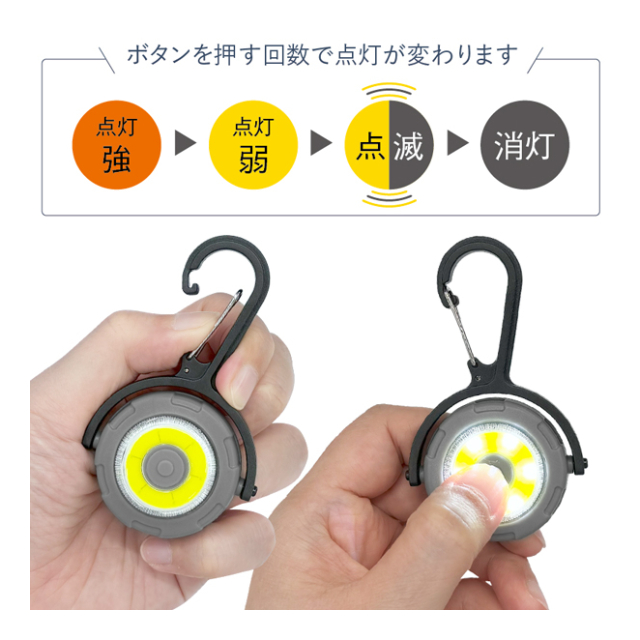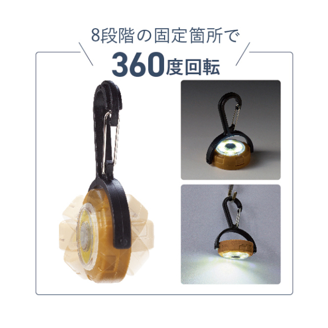 カラビナライト 360度回転 電池式 COBライト COB LED 点滅 点灯 8段階ライト 角度調節可能 コンパクトライト ハンディライト 懐中電灯 ワークライト フック 吊り下げライト 防災グッズ 台風 豪雨 地震対策 ベルトループ バッグ リュック にも付けられる 高照度 COB カラビナライト 吊り下げライト アウトドア キャンプ 登山 夜釣り ◇ 360度回転ライト