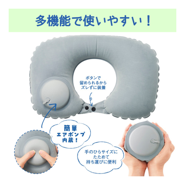 エアー式 ネックピロー エアポンプ内蔵 折りたたみ エアーネックピロー トラベルネックピロー コンパクト すぐ膨らむ 首枕 クッション 旅行用 折りたたみネックピロー トラベルグッズ カー用品 まくら 枕 手動ポンプ式 旅行グッズ 車内 移動 飛行機 新幹線 電車 バス 仮眠 ◇ ネックピローMT