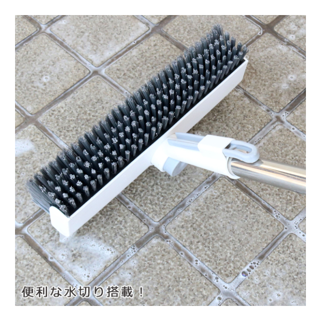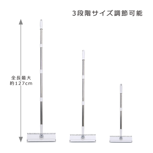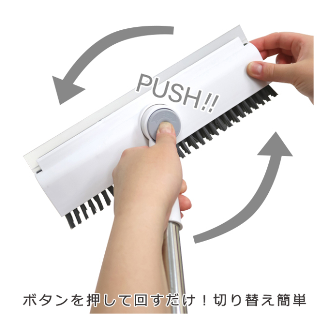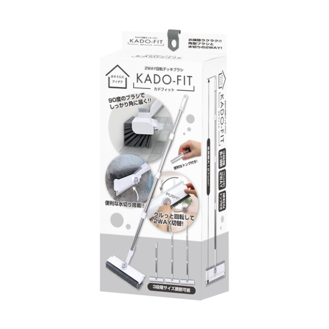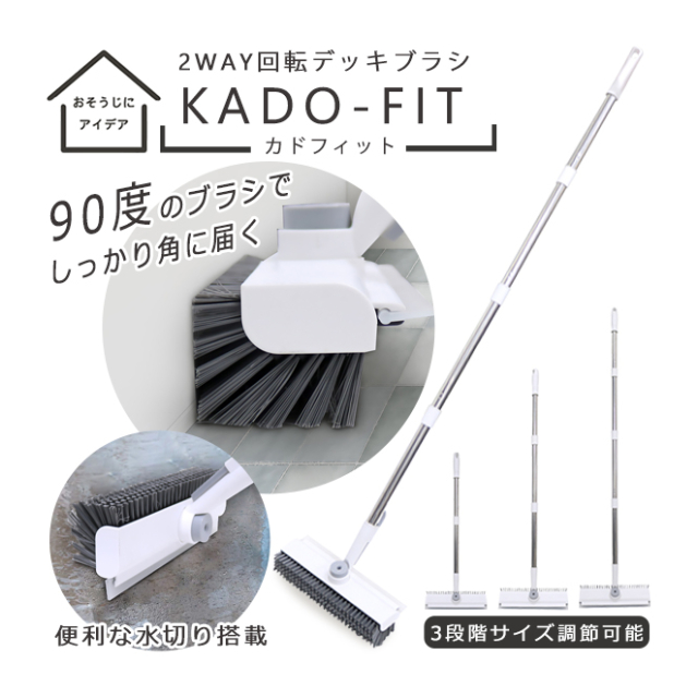 2WAY回転 デッキブラシ カドフィット トング付き デッキブラシ & 水切りワイパー 2WAY お掃除ブラシ パイプブラシ タイル 床 コンクリート 玄関 掃除用品 大掃除 床ブラシ 水切りモップ & フロアブラシ 直角 90度 ブラシ 角にピタッ 長さ3段階 調整可能 127cm/98cm/71cm ◇ カドフィット