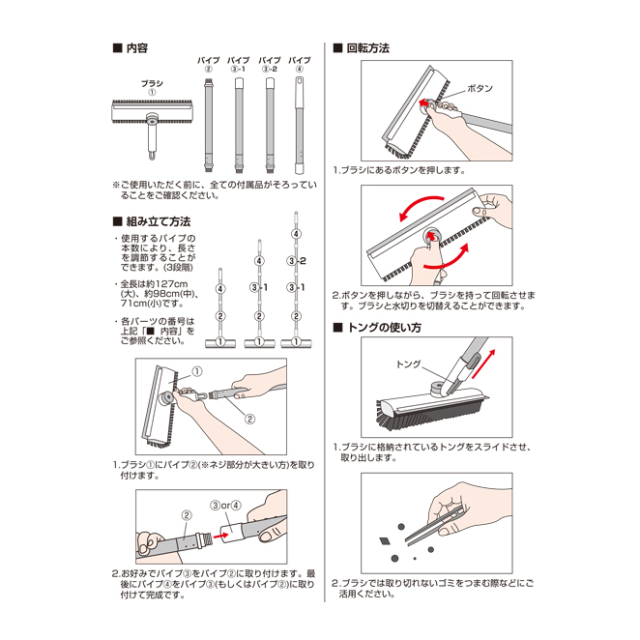 | セット内容 パイプ×4、ブラシ×1、トング×1 ・ 掲載画像はイメージであり、実際の製品とは多少異なる場合があります。 ・ 製品の仕様は品質の向上・改善のため、予告なく変更となる場合があります。 ・ 入荷時期によってパッケージは多少異なる場合があります。 |