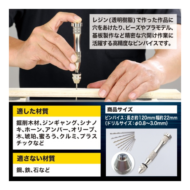 | 本体サイズ ピンバイス : 長さ(約)120mm、幅(約)22mm |