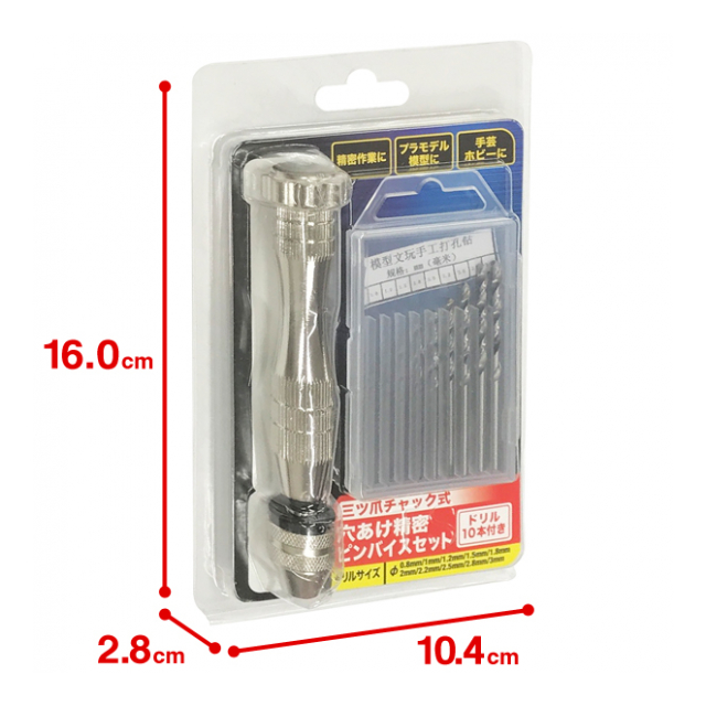 ピンバイス ドリル10本 収納ケース 付き ピンバイスセット 0.8mm から プラモデル ネイルアート 木材 プラスチック 穴あけドリル ハンドメイド 工作 工具 ◇ ピンバイスセット
