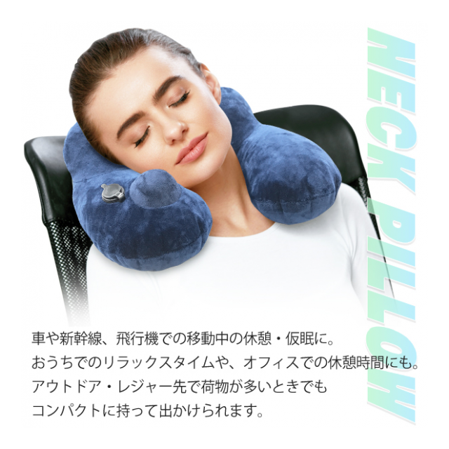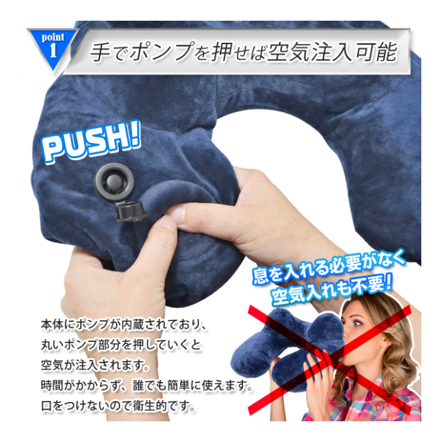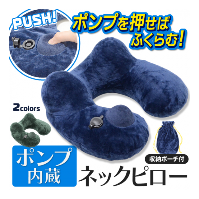 息を吹き込まなくても膨らむ!ポンプ内蔵ネックピロー!