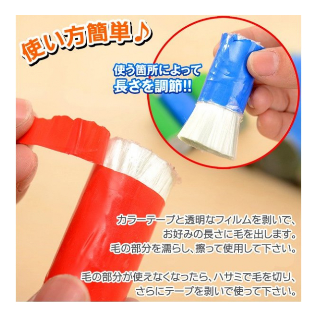 | 内容量 5個セット ※本体外側のカラーテープの色はお選びいただけません。また、掲載写真にない色でのお届けとなる場合がございます。 ※簡易梱包での発送となります。予めご了承くださいませ。 ※製造工程上、毛先に色が付いていますが、ハサミ等で切ってご使用下さい。 ※ひどいこげや錆は落とせない場合があります。 ※擦る箇所を磨耗する為、コーティングされているものへの使用は避けて下さい。 |