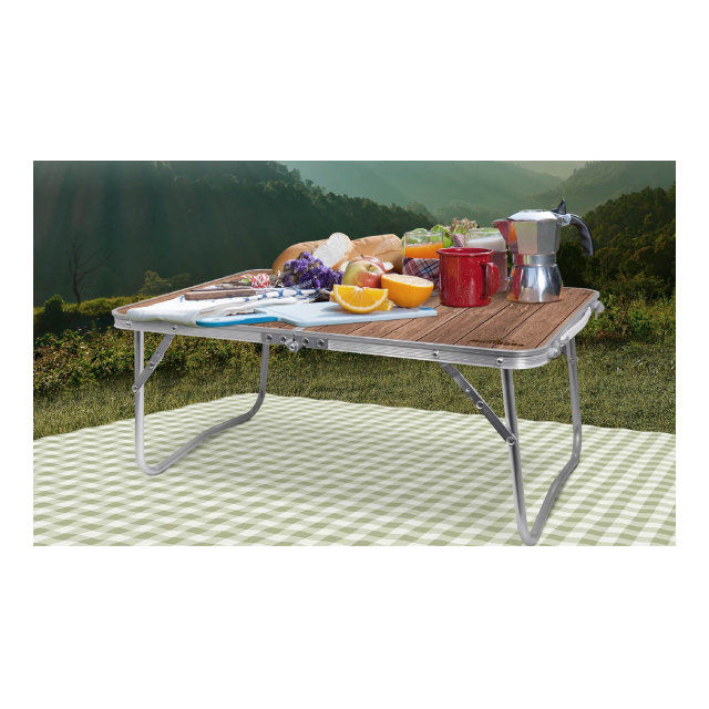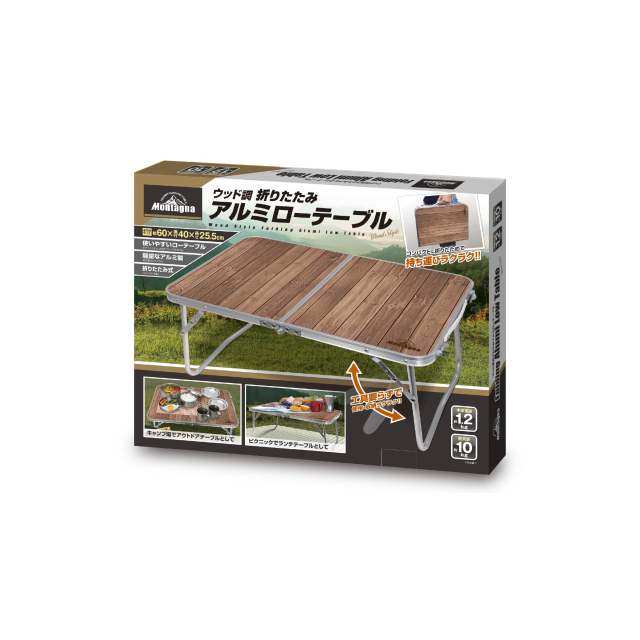 ウッド調折りたたみアルミローテーブル