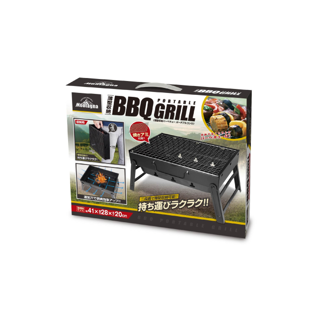 | サイズ 約W41×D28×H20cm(使用時) 約W35×D28×H6cm(収納時) 約W36×D7×H29cm(箱) 重 量 約1kg(本体) 約1.2kg(箱込) 主材質 スチール(本体) 鉄(焼網) 取扱説明書 有 付属品 無 |
