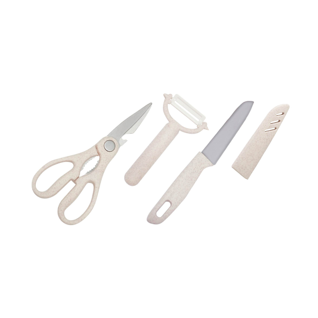 | サイズ 約W26×D18×H3.5cm(トレー) 約W25×D17.5×H0.5cm(まな板) 約W8×D2×H13.5cm(ピーラー) 約W3×D1.5×H20.5cm(ナイフ) 約W8.5×D1.5×H20cm(万能バサミ) 約W26×D4×H19cm(箱) 重 量 約470g(本体) 約560g(箱込) 主材質 PP・セラミック・ABS・ステンレス |