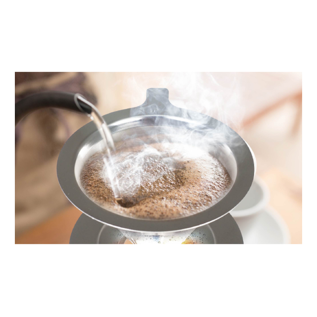 挽いたコーヒー豆にお湯を注ぐだけで、