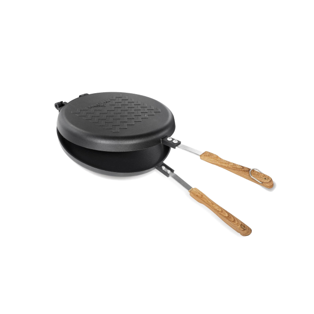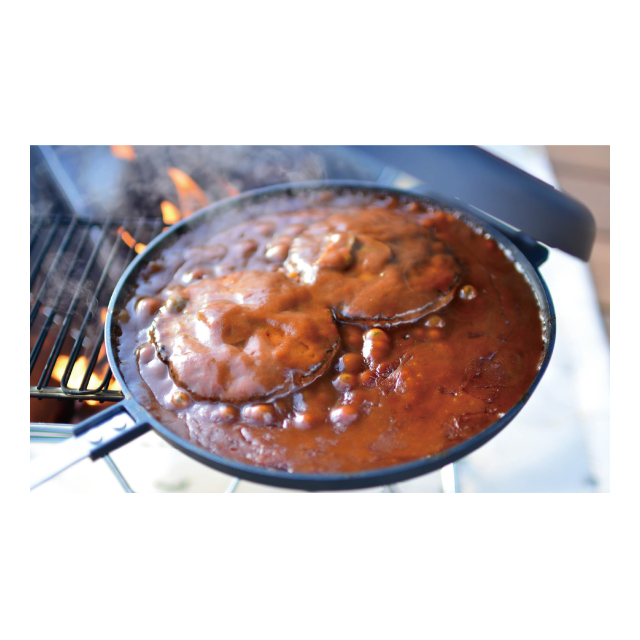 | サイズ 約W23×D4.5×H46cm(本体) 約Φ22cm(プレート内径) 約W23.5×D5.5×H47cm(箱) 重 量 約650g(本体) 約850g(箱込) 主材質 アルミニウム合金(プレート面) フェノール樹脂・ステンレス(取手) |