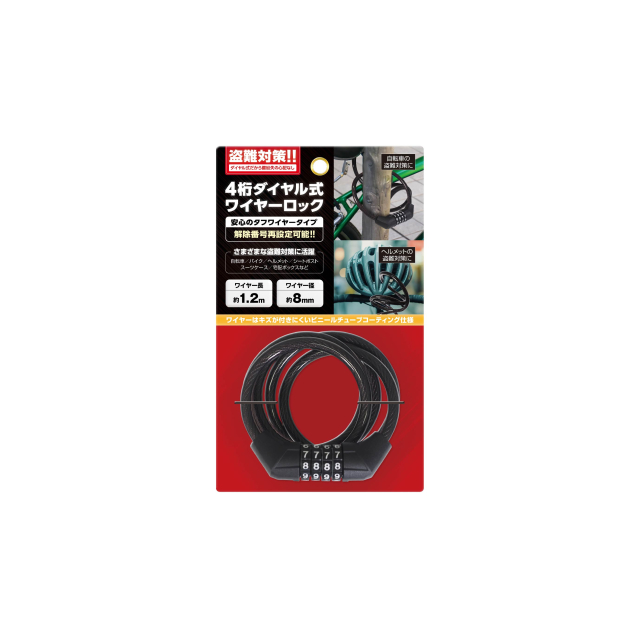 4桁ダイヤル式ワイヤーロックタフワイヤータイプ