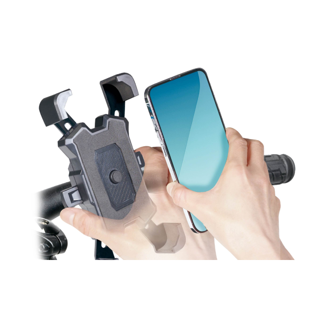 取り付け可能でスマホのサイズに合わせて簡単に固定。