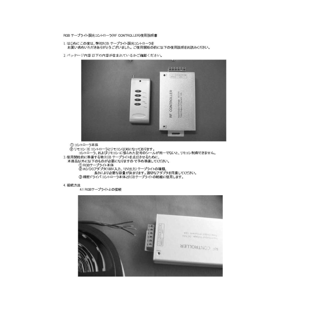 LEDテープライト用RGB調光コントローラ、144W、リモコン付き