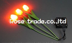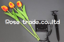 ソーラー充電式LEDチューリップ、3本セット、オレンジ