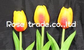 黄色と赤が混じった美しい色合いのチューリップ。3本セットです