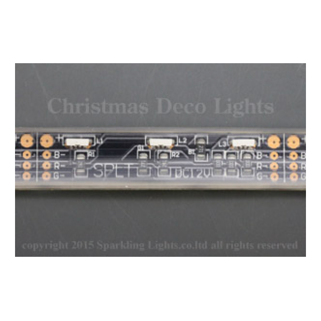 | 防水型・屋外向け(IP65) テープ基板はシリコンのカバーで覆われています。 IP65の防塵・防水性がありますので、屋外で使用可能です。 (完全に水没した状態で使用することはできません) ※チューブ内は中空となります。樹脂は充填されていません。 結露させないでください。 5cm間隔でカット可能 5cm毎(3球毎)にカットラインがありますので、ここで切断可能です。 高品質の日亜LED使用 日亜化学工業製の高品質LEDを使用しています。 LEDだから低消費電力 消費電力は5mで48Wです。 黒基板タイプ 基板色は黒です。背景が黒の場合も目立たない基板色になります。 ご使用方法 ご使用にはRGB3ch調光コントローラ・AC/DCアダプタ等の部品が必要になります。 ※信号増幅器(アンプ)をご使用になる場合は大容量30Aタイプをご使用ください。 12Aタイプでは、正常に同期されない場合がございます。 |