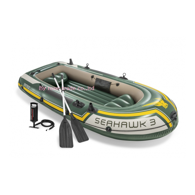| □ メーカー INTEX □ 品番 68380 □ PVC 食品衛生法対応可塑剤使用 □ サイズ 295×137×43cm □ 気室 3 □ オール/ミニポンプ オール固定具/ロープ(オールラウンド) □ ビニール厚 0.75mm □ 3人用 □ 許容重量 360キロ □ ビニール厚 0.68mm □ リペアパッチ付き |