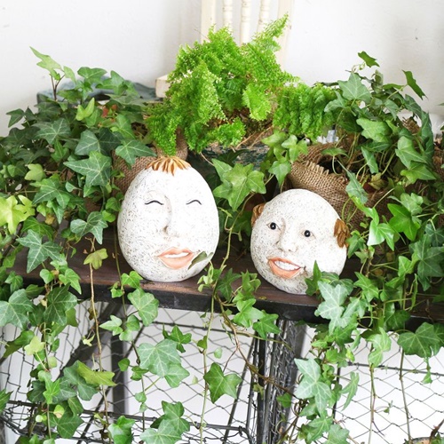 アートストーン◆鉢の中にちょっと置いたり、又はお庭の片隅に置くだけで、ハッピーな空間になります。CTP-132 しあわせ父さんはTOPの髪が無く円の形の方、CTP-133笑顔の君はTOPにだけ髪がある楕円の方です。
