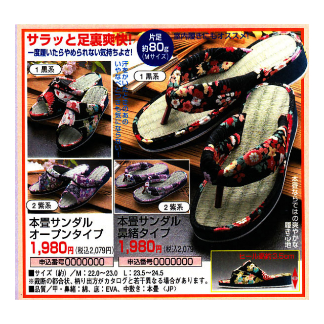 い草の履物は一日中履いていても、蒸れずに足元を爽やかに保つため、暑い夏場には特に好まれます。
